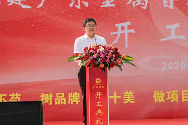 蘇商集團董事局第一副主席、CEO王健闖,云浮市副市長徐樹新出席儀式并致辭,蘇商集團大區(qū)總裁、蘇商建設(shè)第十一集團董事局主席左帆,云浮市云城區(qū)副區(qū)長孟剛,云浮市云城區(qū)副區(qū)長劉順華,天津市市政工程設(shè)計研究院副院長曹景等出席開工儀式。