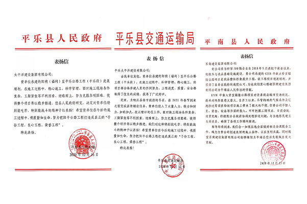 蘇商建設(shè)第十九集團(tuán)收到廣西平樂縣、平南縣政府及平樂縣交通運(yùn)輸局表揚(yáng)信