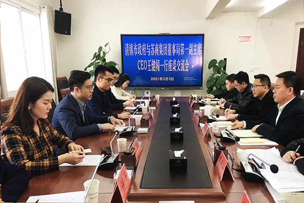 2月5日,蘇商集團(tuán)董事局第一副主席、CEO、蘇商建設(shè)董事局王健闖同貴州省貴陽(yáng)市清鎮(zhèn)市委副書(shū)記、市長(zhǎng)王鳴明舉行會(huì)談,雙方就加快落實(shí)貴州省與蘇商集團(tuán)戰(zhàn)略合作協(xié)議、全面深化地企合作事宜深入交流。