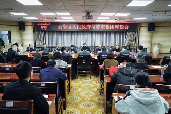 3月4日,蘇商集團(tuán)董事局第一副主席、CEO、蘇商建設(shè)董事局王健闖同貴州省貴陽(yáng)市云巖區(qū)委副書(shū)記、區(qū)長(zhǎng)王黔舉行會(huì)談,雙方就進(jìn)一步深化合作展開(kāi)交流。