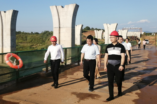 湖南省株洲市攸縣縣委書記李鵬程一行蒞臨蘇商建設第十一集團承建攸縣洣水四橋項目調研