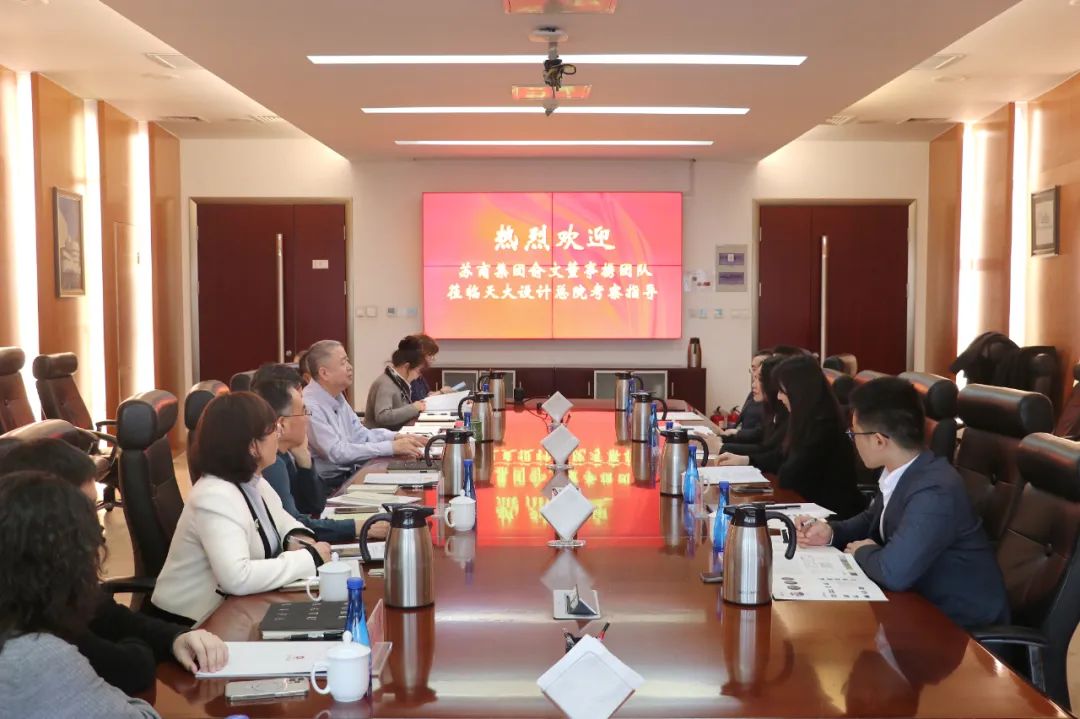 張錫治對俞文一行的到來表示歡迎,并介紹了天津大學建筑設計規(guī)劃研究總院有限公司發(fā)展歷程、業(yè)務范圍、經營理念、設計資質等。他表示,天津大學建筑設計規(guī)劃研究總院有限公司依托天津大學的人才、學科和技術優(yōu)勢,歷經70年發(fā)展,擁有建筑設計、城鄉(xiāng)規(guī)劃、風景園林、市政等13項國家級設計資質與許可。蘇商集團在基礎設施建設領域具有巨大優(yōu)勢與豐富經驗,希望雙方強強聯(lián)手,發(fā)揮各自優(yōu)勢,圍繞發(fā)展契合點,多層面拓展合作空間,實現(xiàn)互利共贏。