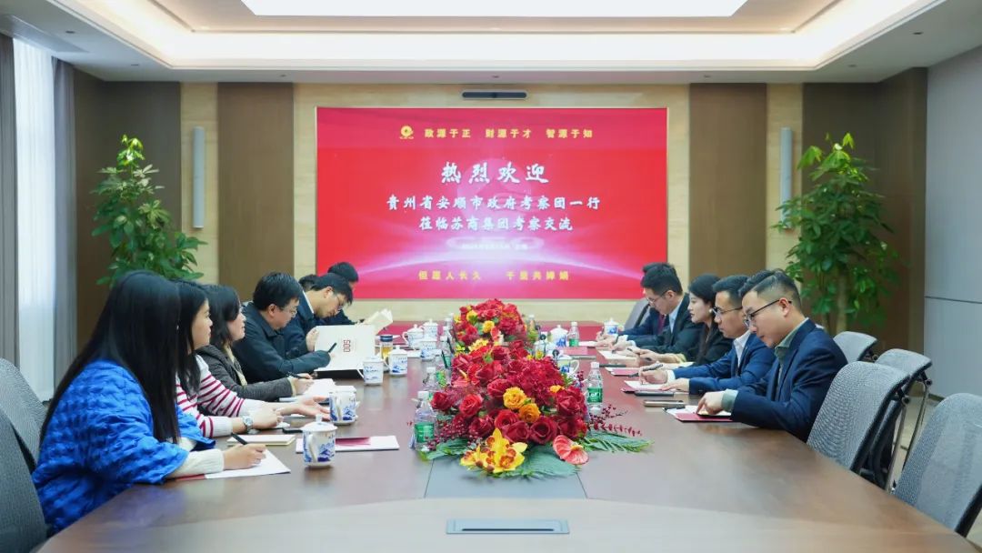 3月13日,貴州省安順市副市長(zhǎng)欒雁一行蒞臨蘇商集團(tuán)上??偛靠疾旖涣?,蘇商市政董事局主席王寧,董事局副主席劉闖全程陪同。