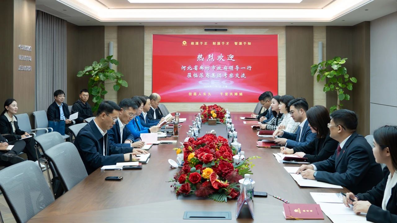 11月7日,蘇商集團(tuán)董事局主席嚴(yán)昕在滬同河北省廊坊市市長劉媛會(huì)談,雙方就基礎(chǔ)設(shè)施投資建設(shè)合作事宜展開交流。蘇商集團(tuán)董事局副主席、蘇商建設(shè)董事局主席王健闖參加會(huì)談。
